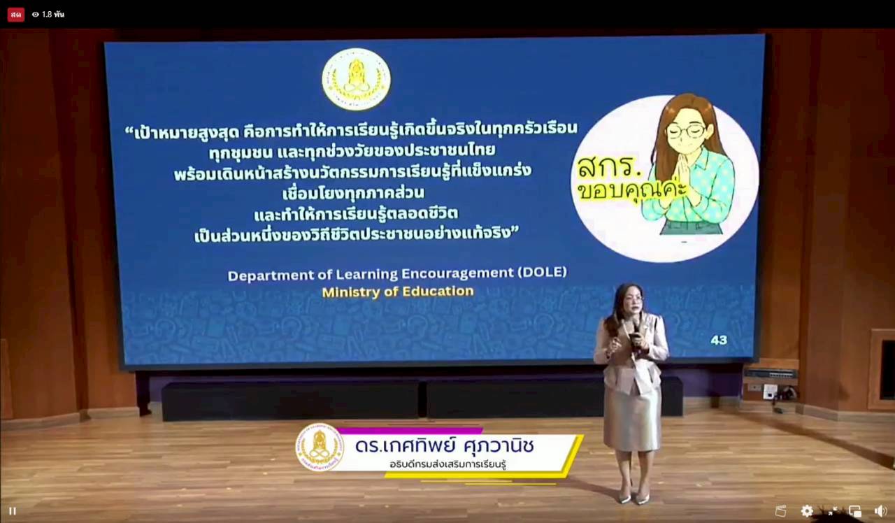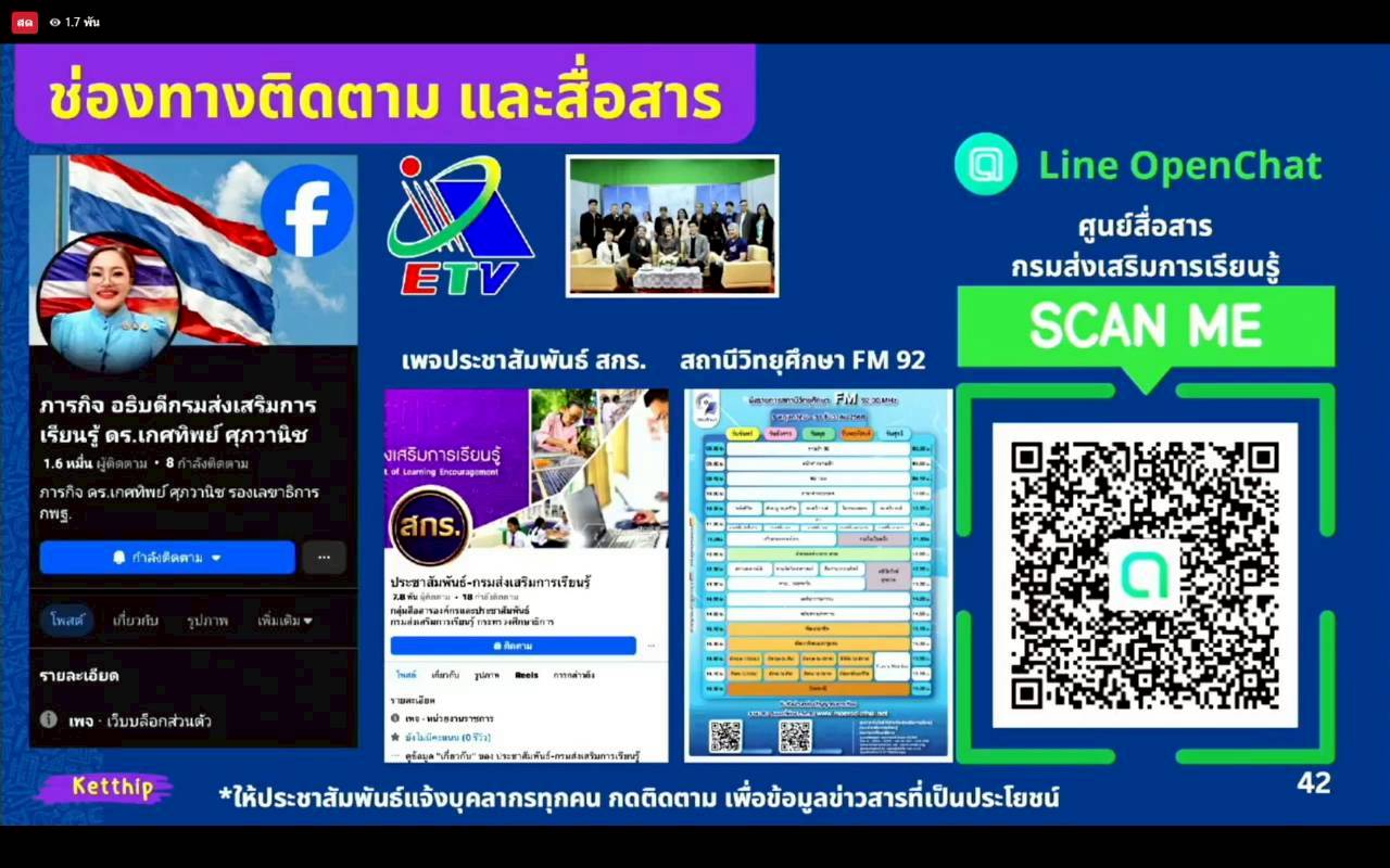 นางอัจจิมา วรรณเลิศ ครู รักษาการในตำแหน่ง ผู้อำนวยการศูนย์ส่งเสริมการเรียนรู้ระดับอำเภอลอง พร้อมด้วย คณะครู บุคลากร สกร.รดับอำเภอลอง รับฟังนโยบายอธิบดีกรมส่งเสริมการเรียนรู้ ทาง etv.chanel โดย ดร.เกศทิพย์ ศุภวานิช อธิบดีกรมส่งเสริมการเรียนรู้ สถานที่ ห้องประชุม สกร.ระดับอำเภอลอง จังหวัดแพร่