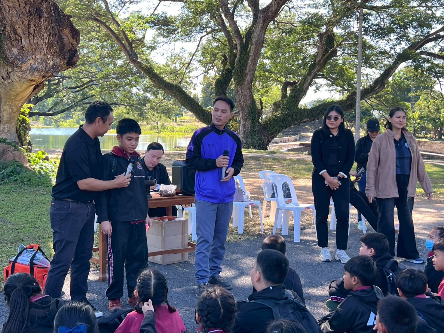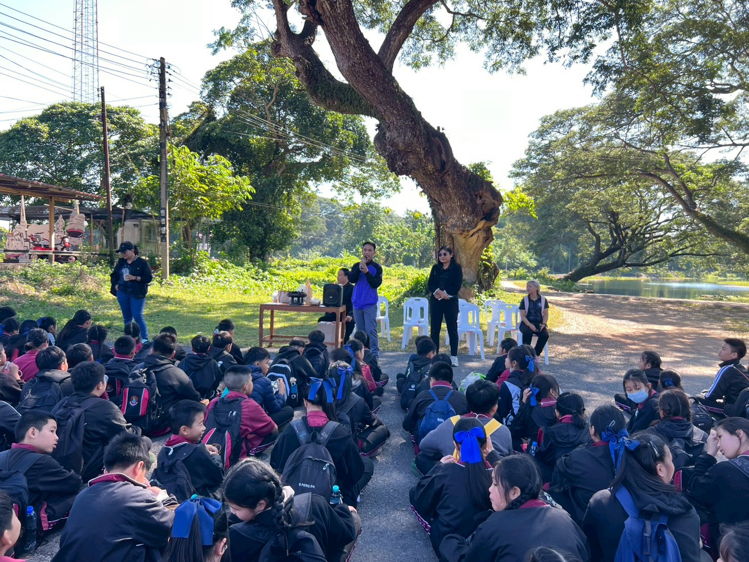 นางสาวชาลิตศา เฒ่าเขียว ครู รักษาการในตำแหน่งผู้อำนวยการ สกร.ระดับอำเภอลอง /นายพิรุฬห์ ขวัญเพชร นายสถานีรถไฟบ้านปินร่วมกับเทศบาลตำบลบ้านปิน โดยนายสมศักดิ์ วงค์หลวง นายกเทศมนตรีตำบลบ้านปิน มอบหมายให้ นางสาวอนันตญา อินทราวุธ บรรณารักษ์ปฏิบัติการ,นายรัชตะ จิตรบุณย์ บรรณารักษ์ และนางสาวธนัญชนก จักรแหลม บรรณารักษ์ นายภาสกร ถาเงิน ครู ศกร.ระดับตำบลบ้านปิน ให้การต้อนรับคณะครู และนักเรียนโรงเรียนวัดเมธังกราวาส (เทศรัฐราษฎ์นุกุล) จ.แพร่ และจัดกิจกรรมบรรยายให้ความรู้เกี่ยวกับประวัติรฆังลุกระเบิด และกิจกรรมมอบ“โบว์ดำ” เพื่อร่วมแสดงความอาลัย และน้อมรำลึกในพระมหากรุณาธิคุณอย่างหาที่สุดมิได้ จำนวนผู้เข้าร่วม นักเรียน 180 คน คณะครู 20 คน รวม 200 คน ณ แหล่งเรียนรู้บ้านหนังสือชุมชนสถานีรถไฟบ้านปิน อำเภอลอง จังหวัดแพร่