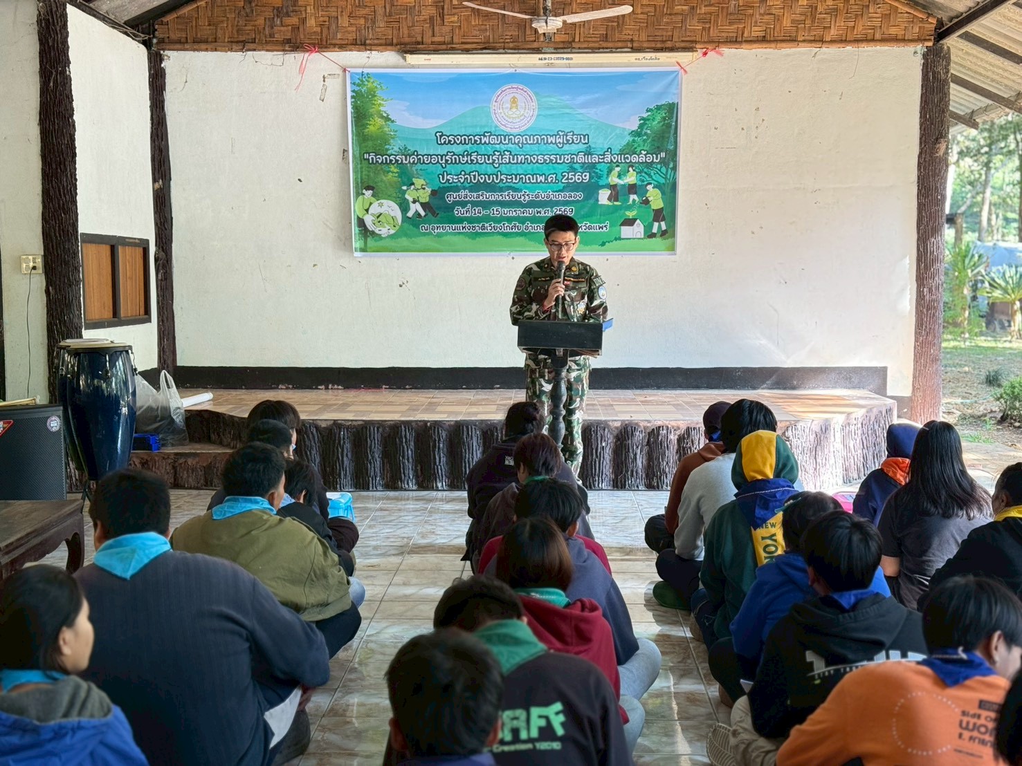 นางสาวชาลิตศา เฒ่าเขียว ครู รักษาการในตำแหน่ง ผอ.สกร.ระดับอำเภอลอง มอบหมายให้ นายภาสกร ถาเงิน ครู ศูนย์การเรียนรู้ นำนักศึกษาเข้าร่วมโครงการพัฒนาคุณภาพผู้เรียน กิจกรรมค่ายอนุรักษ์เรียนรู้เส้นทางธรรมชาติ โดยมีฐานการเรียนรู้ดังนี้ ฐานที่ 1 การศึกษาเส้นทางธรรมชาติ ฐานที่ 2 การสำรวจพืชพรรณ สมุนไพร ฐานที่ 3 การป้องกันภัยในป่า (การเอาตัวรอด) ฐานที่ 4 ฝุ่นพิษวิกฤต PM 2.5 ฐานที่ 5 การำแนวกันไฟ ฐานที่ 6 กิจกรรมจิตอาสา ณ อุทยานแห่งชาติเวียงโกศัย อำเภอวังชิ้น จังหวัดแพร่
