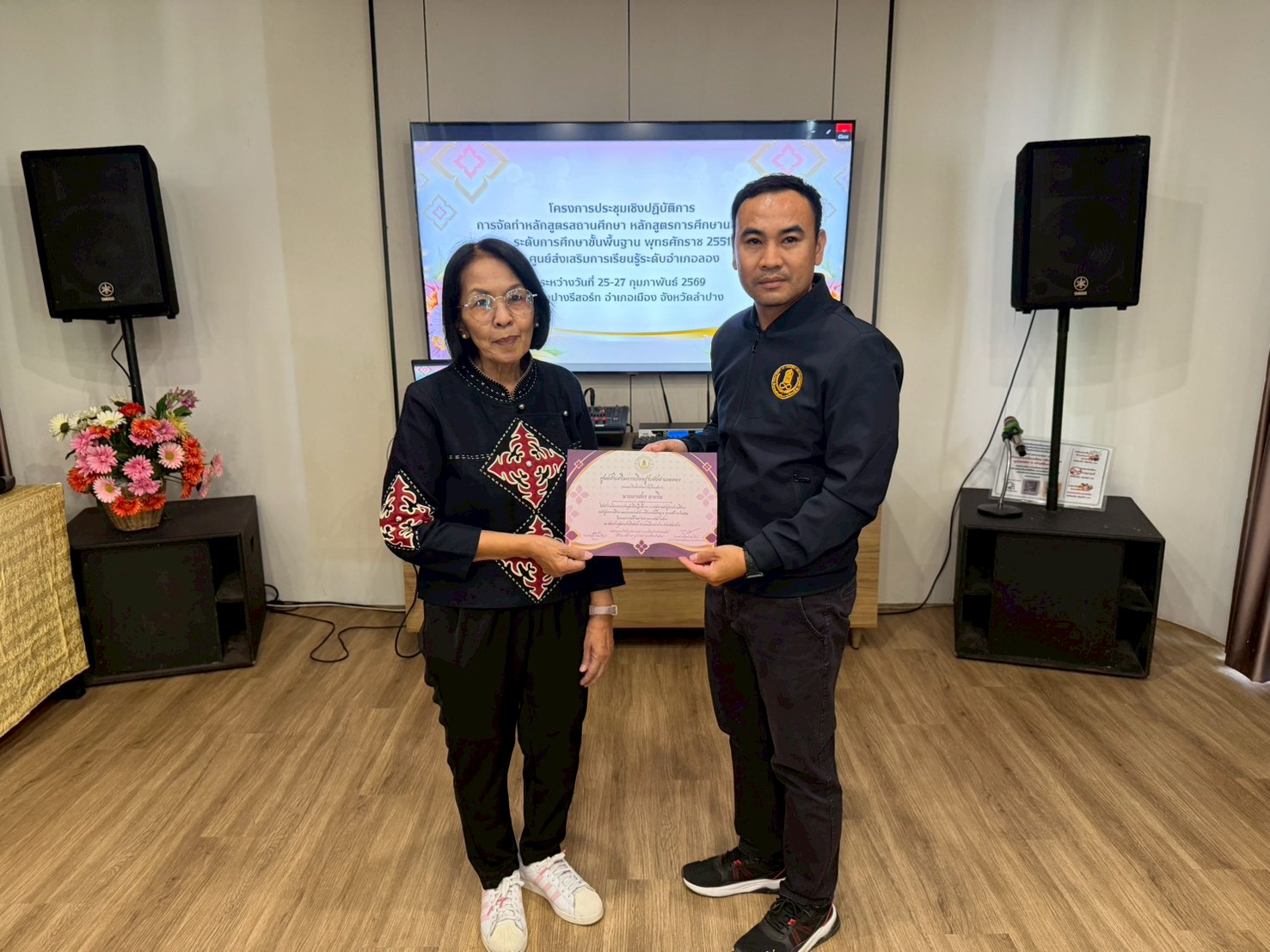 นางสาวชาลิตศา เฒ่าเขียว ครู รักษาการในตำแหน่ง ผอ.สกร.ระดับอำเภอลอง พร้อมด้วยคณะครูและบุคลากร โครงการประชุมเชิงปฏิบัติการ การจัดทำหลักสูตรสถานศึกษา หลักสูตรการศึกษานอกระบบระดับการศึกษาขั้นพื้นฐาน พุทธศักราช 2551 วิทยากรโดยนางอัญชลี ธรรมะวิธีกุล ณ ลำปางรีสอร์ท อำเภอเมือง จังหวัดลำปาง